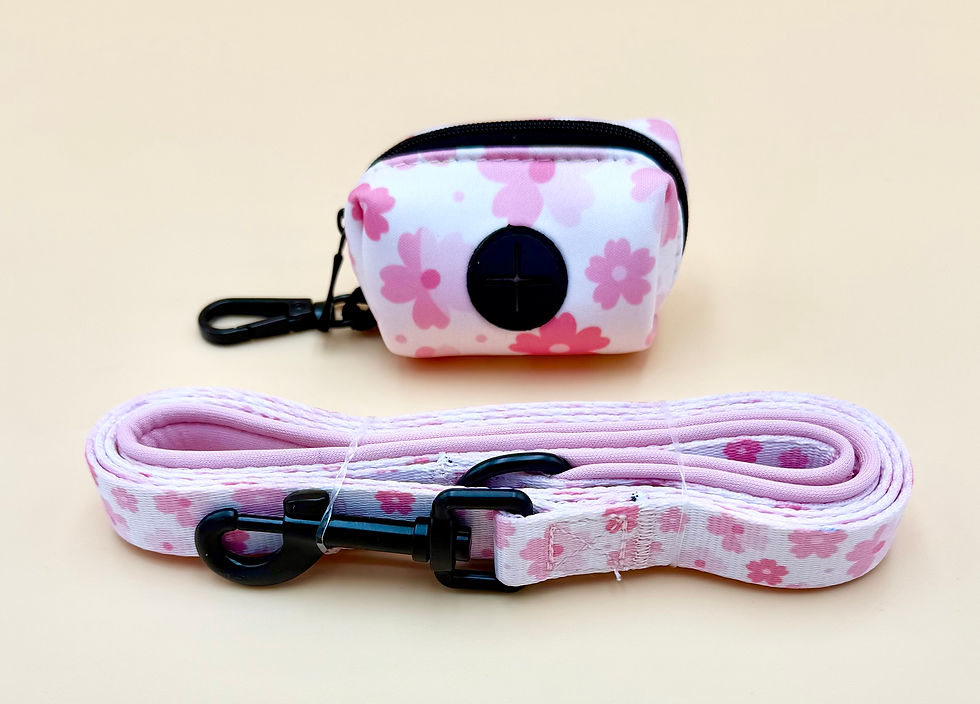 Leash & Poop Bag Holder Set - Pink Flower
