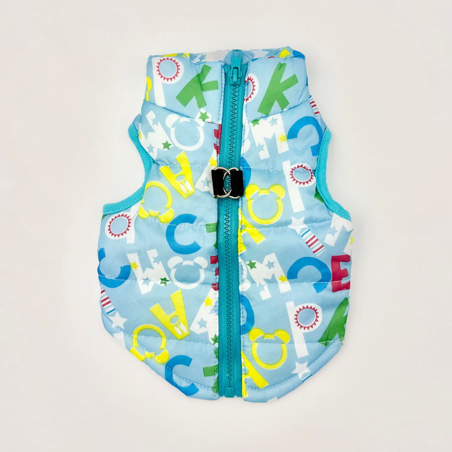 Winter Dog Vest - Light Blue Alphabet